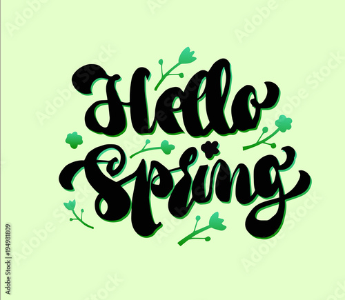 Hello Welcome Spring Lettering Brush Pen Hand Drawn Calligraphy Modern Style Of Writing With Green Illustration Stock Vector Adobe Stock