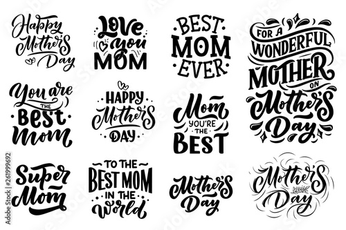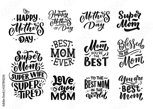 Set Of Mother S Day Lettering For Gift Card Vintage Typography Great Design For Any Purposes Modern Calligraphy Banner Template Celebration Quotes Handwritten Text Postcard Vector Illustration Stock Vector Adobe Stock