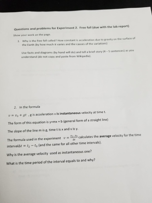 Questions And Problems For Experiment 2 Free Fall Chegg Com