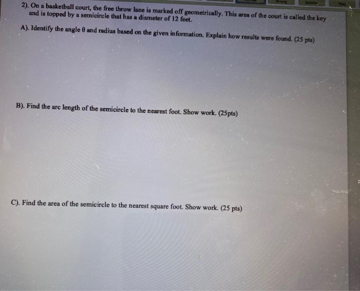 Solved 2 On A Basketball Court The Free Throw Lane Is Chegg Com