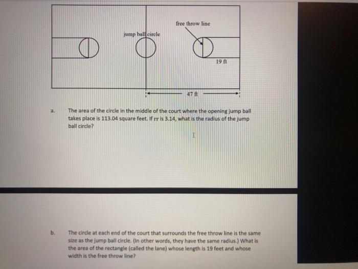 Solved Free Throw Line Jump Ball Circle O 19 47 Ft A The Chegg Com