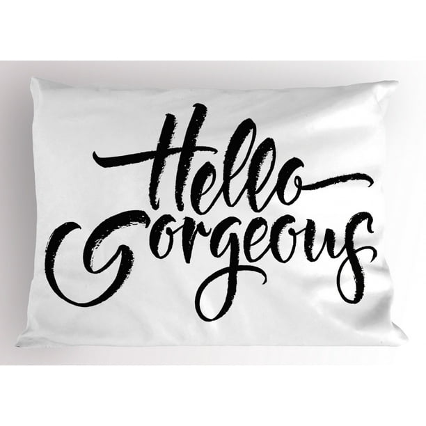 Hello Gorgeous Pillow Sham Weathered Font Of Inspirational Quote Modern Typography Brush Lettering Decorative Standard King Size Printed Pillowcase 36 X 20 Inches Black And White By Ambesonne Walmart Com Walmart Com